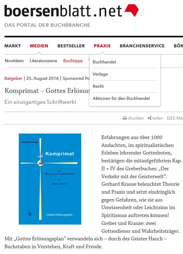 Gerhard Krause KOMPRIMAT zum Buch von Pfr. Johannes Greber